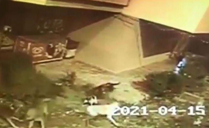 Köpeklerin kediye saldırma anlarıysa güvenlik kamerasına saniye saniye yansıdı.