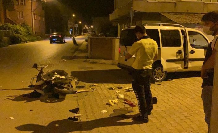 Bursa’nın İznik ilçesinde bir motosikletin otomobile çarpması güvenlik kamerasına yansıdı. Kazada 2 kişi yaralandı.