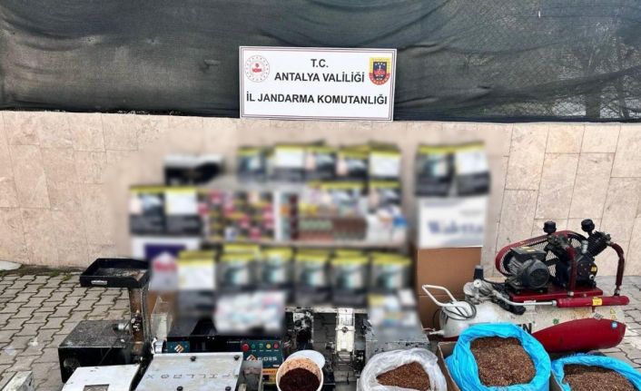 Antalya İl Jandarma Komutanlığı Kaçakçılık ve Organize Suçlarla Mücadele Şube Müdürlüğü ile Korkuteli İlçe Jandarma Komutanlığı ekipleri savcılık koordinesinde, kaçakçılıkla mücadele kapsamında ilçede faaliyet gösteren bir işletmeye operasyon düzenledi. Yapılan aramalarda 5 adet sigara sarma makinesi, 1 kompresör, 250 kilogram bandrolsüz kaçak tütün, 20 bin adet tütünle doldurulmuş makaron, 200 bin adet bandrolsüz boş makaron ve 20 kilogram bandrolsüz nargile tütünü ele geçirildi.