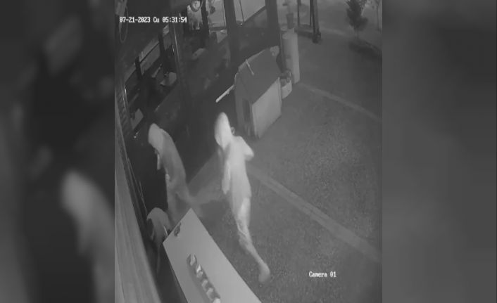 Bursa’da bir tekel bayisini soymak isteyen 3 kişi, dükkana giremeyince başka bir iş yerine yönelip kova kova bira çaldılar. O anlar hem güvenlik, hem de telefon kamerasına yansıdı.