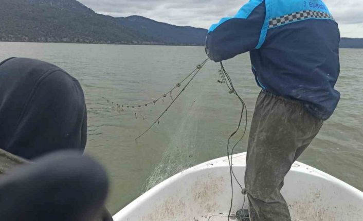 Isparta’nın Eğirdir ilçesindeki Kovada Gölü Milli Parkı’nda yapılan denetimlerde, yasak dönemde suya bırakılan yaklaşık 600 metre uzunluğunda uzatma ağı ele geçirilirken, ağdaki canlı balıklar tekrar göle bırakıldı.