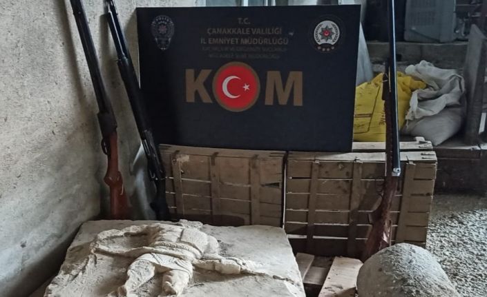 Çanakkale’nin Kumkale köyünde gerçekleştirilen operasyonda, M.Ö. 200-600 yıllarına ait olduğu değerlendirilen gladyatör figürlü dikili taş (steli) ile yine aynı döneme ait olduğu değerlendirilen sütun tamburu parçası ele geçirildi.