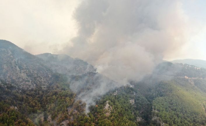 Yanan saha havadan görüntülenirken, duman bulutu gökyüzünü kapladı. Yangının seyrinin Sazak Mahallesine doğru ilerlediği öğrenilirken, üst bölgelerde bulunan Otman Mahallesinin ise şimdilik tehlike arz etmediği öğrenildi.