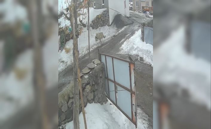 Ardahan’ın Çıldır ilçesine bağlı Meryem köyü meydanına kadar inen bir kurt, kaz sürüsüyle karşılaştı. Olay bir güvenlik kamerasına saniye saniye yansıdı. Kurdun, evin önünde gezinen kazlardan birini yakaladığı anlar görüntülere yansıdı.