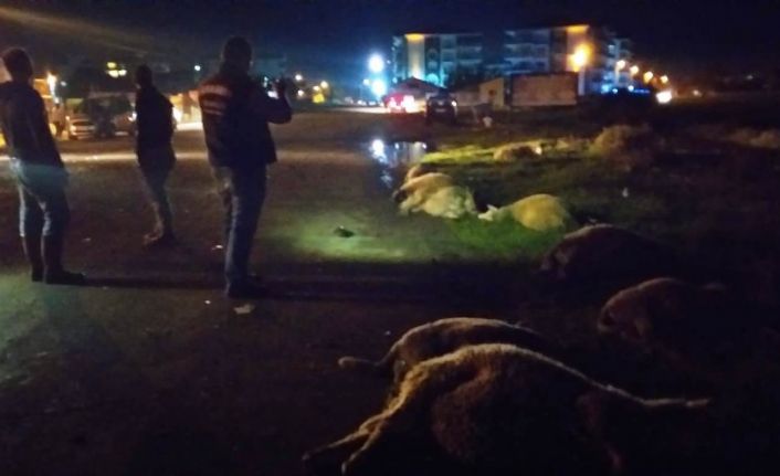 Koyun sürüsüne otomobil çarptı: 15 koyun telef oldu