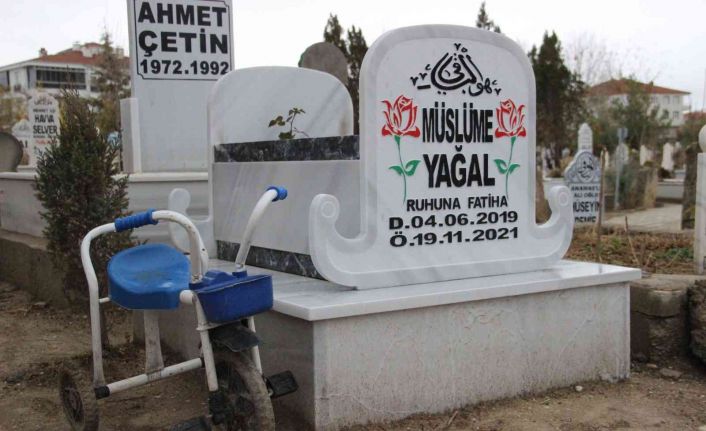 KARAMAN (İHA) – Karaman’da kaybolduktan 10 gün sonra cansız bedeni bulunan ve toprağa verilen 2 buçuk yaşındaki Müsleme Yağal için beşik görünümünde yapılan mezar taşı ile mezarının başına konan çocuk bisikleti yürekleri dağladı.