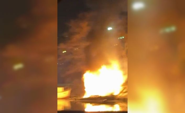 Küçükçekmece’de göl ağzındaki iki kayık alev alev yandı