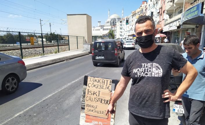 Yapılan yarım çalışmaya vatandaşlar pankart yazarak tepki gösterdi. Çevredeki esnaf, ‘Dikkat çökebilir, İSKİ çalışmıyor, mahalle sakinleri” diye yazılı bir pankart astı.
