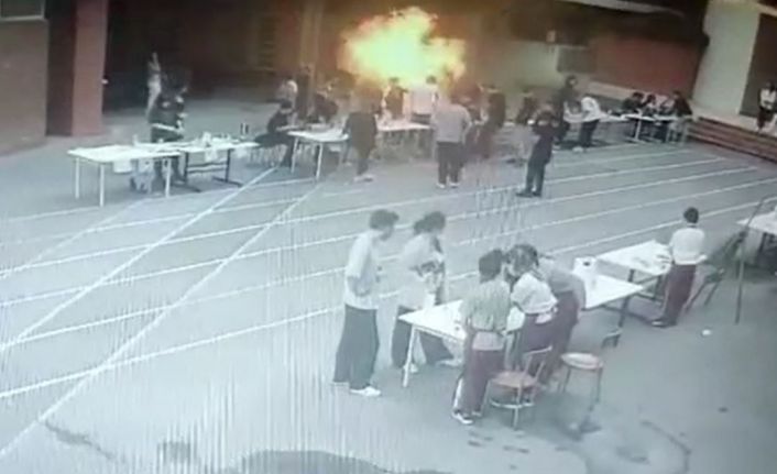 Öte yandan patlamanın yaşandığı anların güvenlik kamerası ortaya çıktı. Patlamada öğrencileri deney yaptığı ve bir anda alevlerin yükseldiği görülüyor. Patlamayı gören diğer öğrencilerin panikle kaçtığı anlar kamera tarafından saniye saniye kaydedildi.