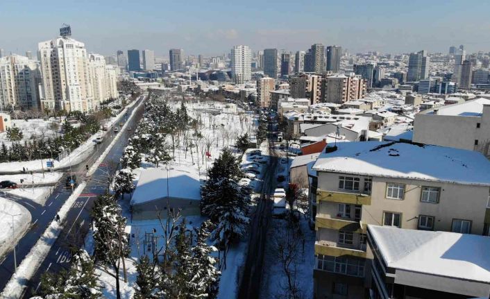 Küçükçemece’de, kar ve rüzgarın etkisiyle kurulması beklenen açık semt pazarları kurulamadı. Pazar yerinde kar içinde kalan park halindeki araçlar görüntülendi. Açılamayan pazar yeri dronla ile görüntülendi.