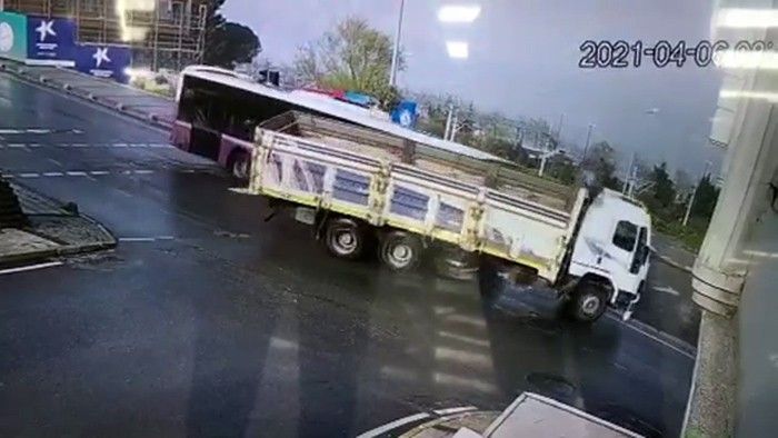 Olay, dün saat 09.00 sıralarında Küçükçekmece İstasyon Caddesi üzerinde meydana gelmişti. İddiaya göre, rampa aşağı süratli bir şekilde seyir halinde bulunan Erol Kaya kontrolündeki 34 AN 7584 plakalı belediye otobüsü, inşaat alanına girmek için manevra yapan Telat Tunç kontrolündeki 34 UJ 6675 plakalı hafriyat kamyonuna çarpmıştı. İhbar üzerine olay yerine polis ekipleri sevk edilirken, kaza nedeniyle trafik bir süre aksamıştı.