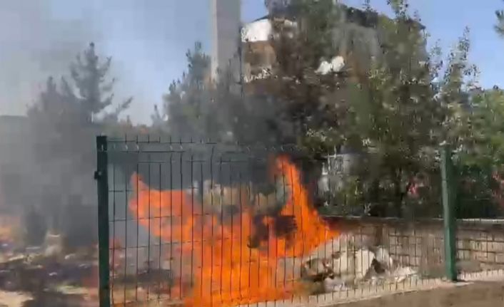 Siirt’in Kurtalan ilçesinde lojman bahçesinde çıkan yangın paniğe neden oldu.