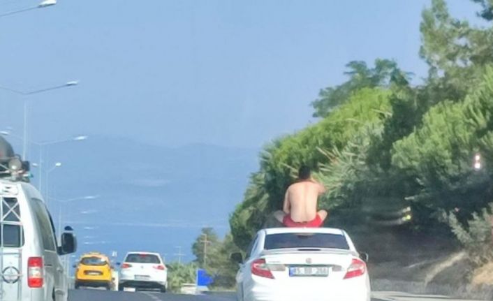 Olay, Süleyman Demirel Bulvarı üzerinde meydana geldi. Edinilen bilgiye göre, seyir halinde ilerleyen bir aracın tavanına oturup alkol aldığı iddia edilen bir kişi, çevredeki vatandaşların cep telefonları ile saniye saniye kaydedildi. Sosyal medyaya düşen görüntüler sonrası harekete geçen Kuşadası İlçe Emniyet Müdürlüğü’ne bağlı Trafik Büro Amirliği ekipleri, sürücü A.G.’ye ve seyir halindeki aracın tavanına çıkıp oyun oynayan S.K.’ye, trafik güvenliğini tehlikeye düşürmek suçundan cezai işlem uygulandı. Sürücüye ve otomobilin tavanına çıkıp oynayan şüpheli hakkında ayrıca adli işlem başlatıldı.