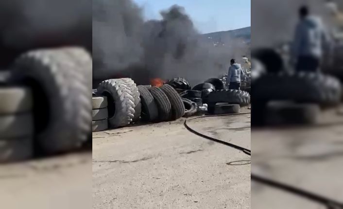Kütahya’daki Fatih Sanayi Sitesi’nde hurda lastiklerin tutuşmasıyla çıkan yangın, itfaiye ekiplerince söndürüldü.