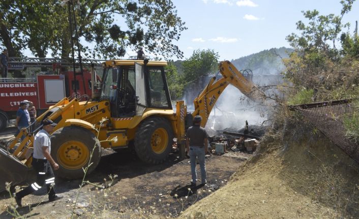 Yangının evin önünde yanan kuzineden çıktığı tahmin ediliyor.