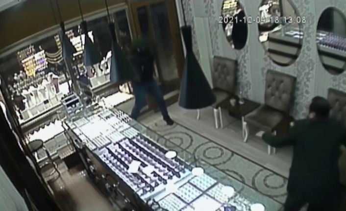 Kuyumcunun soyguncu tarafından vurulma anı güvenlik kamerasına yansıdı