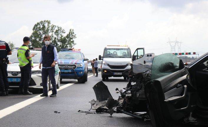 Kuzey Marmara Otoyolu Sakarya geçişinde sürücüsünün kontrolünden çıkan cip bariyerlere çarptı. Kazayı görerek yardım için duran lüks otomobile ise arkadan gelen farklı bir otomobil çarptı. 3 aracın karıştığı zincirleme kazada 2 kişi yaralandı.