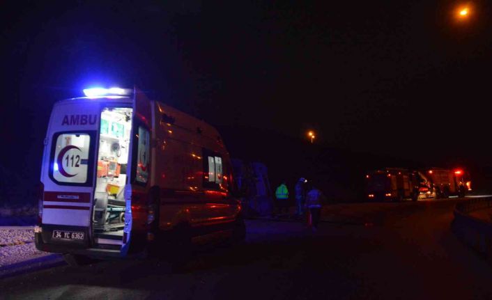 Kuzey Marmara Otoyolunda sürücüsünün kontrolünden çıkan çakıl taşı yüklü tır virajı alamayarak devrildi. Yaralanan tır sürücüsü ambulansla hastaneye kaldırıldı.
