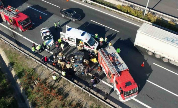 Ayrı olay yeri kazaya karışan 3 araç ve kazanın ardından oluşan trafik yoğunluğu dron kamerasıyla görüntülendi.