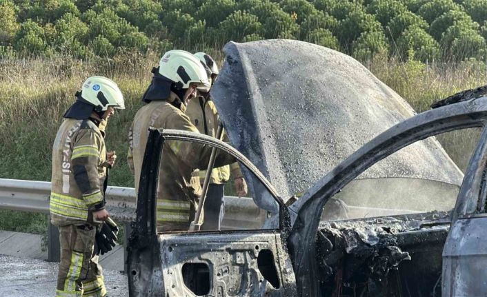 Kuzey Marmara Otoyolu’nda lüks araç alev alev yandı