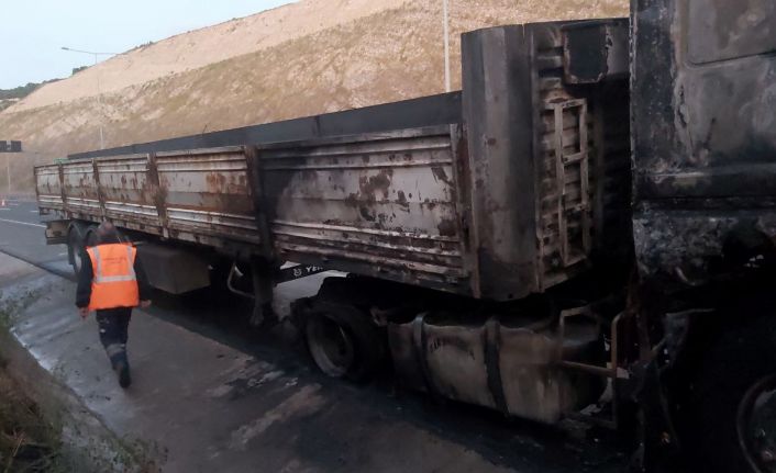 Kocaeli’nin Dilovası ilçesi Kuzey Marmara Otoyolu’nda seyir halindeki tır alev alev yandı.