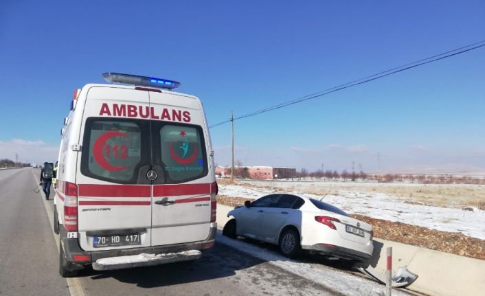 Kaza, saat 11.30 sıralarında Karaman-Konya Karayolunun 7. kilometresinde meydana geldi. Edinilen bilgiye göre, A.U’nun kullandığı 42 AGP 354 plakalı Fiat marka otomobil seyir halindeyken sol ön lastiğinin patlamasıyla kontrolden çıktı. Trafik yön levhasına çarpan otomobil, daha sonra yol kenarındaki 1.5 metrelik beton su kanalına düştü. Kazayı sürücü ile otomobilde bulunan 1’i kadın 4 kişi hafif sıyrıklarla atlattı. Olay yerine gelen sağlık ekibi, otomobilde bulunanların ambulansta kontrollerini yaparken, kazayla ilgili soruşturma başlatıldı.Lastiği patlayan otomobildekiler kazayı sıyrıklarla atlattı