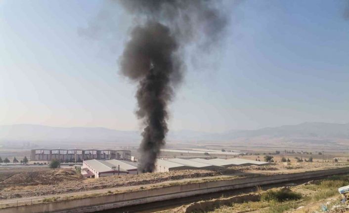 Kahramanmaraş’ta atık lastiklerin yakılması sonucu çıkan duman gökyüzünü kapladı.