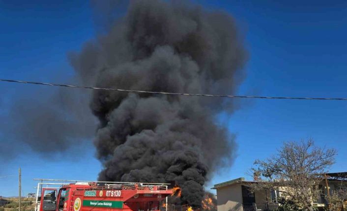 Manavgat’ta bir işyerinin trafosunda başlayan yangın bitişiğinde bulunan 3 bin balya samanın yanmasına neden oldu. Lastiklerinin alev almasıyla gökyüzünde oluşan siyah duman bulutları kilometrelerce uzaktan göründü.