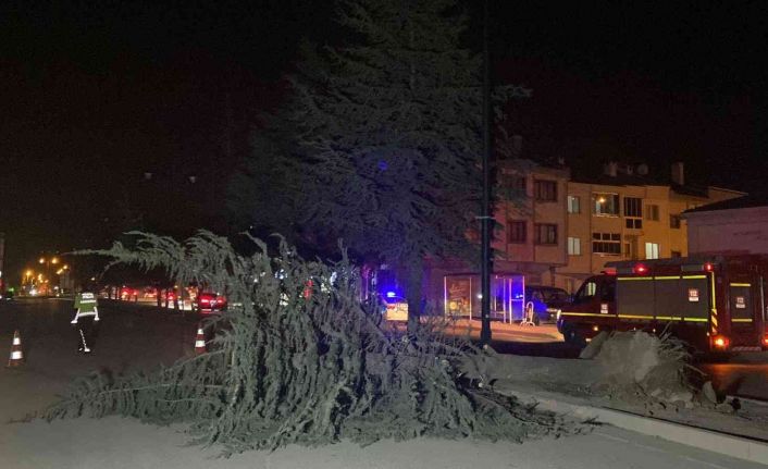 Lodosun etkisiyle ağaç devrildi, yol kapandı