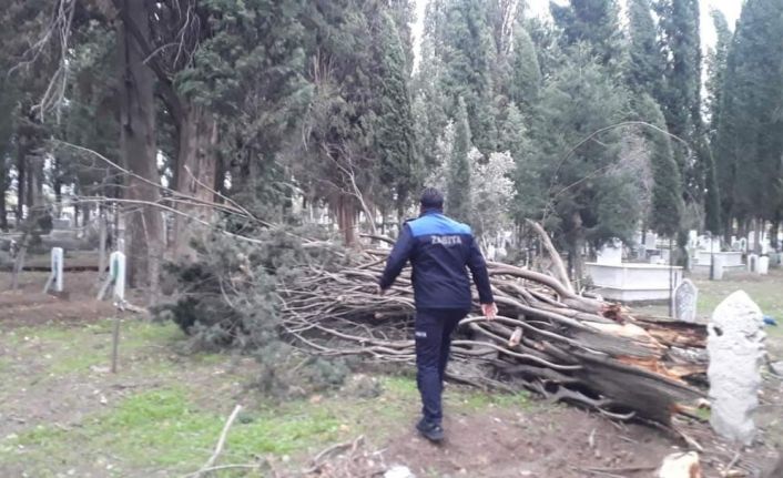 Edremit Körfezinde gece saatlerinden bu yana etkili olan lodos fırtınasının hız 100 kilometreyi aştı. Sahil bölgeleri dışında Havran ilçesinde de asırlık dev ağaçlar devrildi.