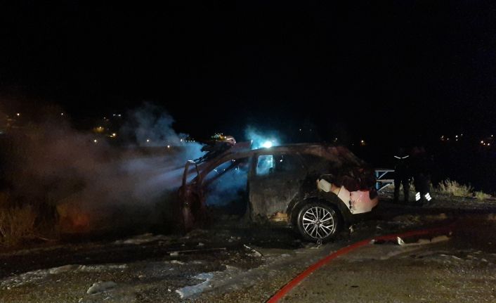 Çorum’da bilinmeyen bir nedenden dolayı alev alan lüks cip tamamen yandı.