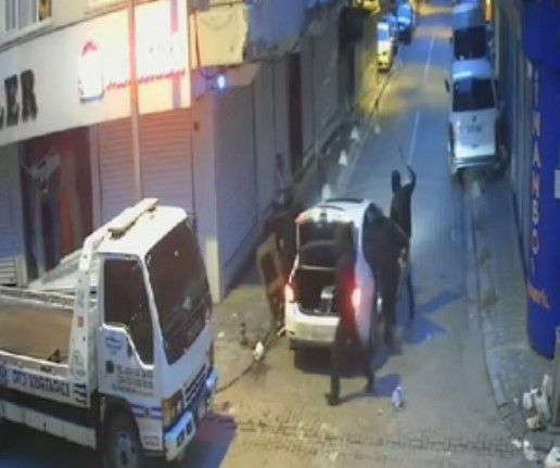 İstanbul Zeytinburnu’nda lüks araçla tekstil mağazasını soymaya gelen yüzleri maskeli 5 şüpheliye bina sakinleri müdahale etti. Mağazadan çıkardıkları çelik kasayı sokağın ortasında bırakan şüpheliler kaçarak uzaklaştı. Bina sakinlerinin sandalye, saksı ve demir sopalı müdahalesi güvenlik kameralarına yansıdı.