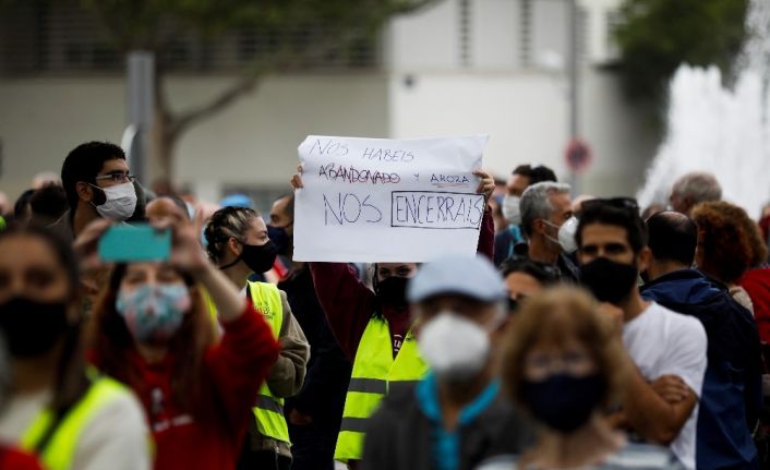İspanya’nın başkenti Madrid’de artan korona virüs vakaları nedeniyle yarından itibaren 6 bölgede uygulanacak olan karantina tedbirleri protesto edildi.