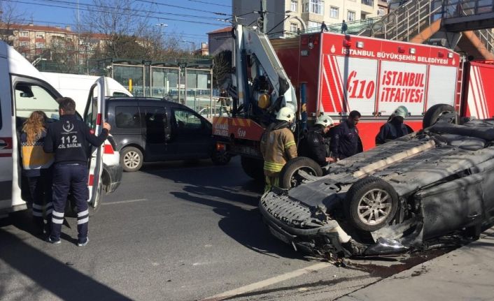 Sultangazi’de makas atarak ilerleyen sürücü kontrolünü kaybederek, kamyonete çarparak takla attı.