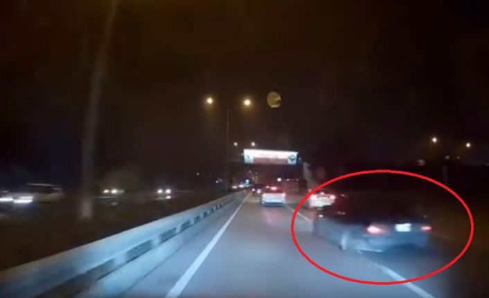 Bursa’da ana arterde hızla seyrederken makas atan otomobil, sürücüsünün idaresinden çıkarak refüje çarptı. Kaza anı saniye saniye araç içi kamerası ile kaydedildi.