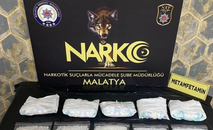 Malatya’da polis ekiplerinin uyuşturucu ile mücadele çalışmaları aralıksız sürüyor. Narkotik Suçlarla Mücadele Şube Müdürlüğü ekipleri tarafından düzenlenen 2 ayrı operasyonda 1 şahsın ikametinde yapılan aramada çocuk bezlerine gizlenmiş vaziyette 745,90 gram metamfetamin maddesi ile Kale uygulama noktasında durdurulan otobüste yapılan aramada 11 kilo 800 gram esrar maddesi ele geçirildi. Ekipler tarafından kontroller esnasından durdurulan bir başka otobüste yapılan aramada ise bin 130 paket gümrük kaçağı tütün mamulü ele geçirildi.