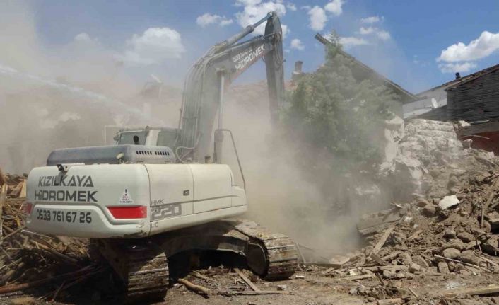Kahramanmaraş merkezli depremlerden etkilenen Malatya’nın Akçadağ ilçesinde ağır hasarlı binaların yıkım işlemleri sürüyor.