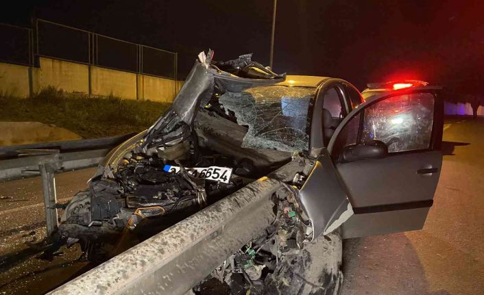 Çarpma sonucu bariyerlere ok gibi saplanan otomobil içerisinde sürücü yaralandı. Yaralı şoför çevredeki hastaneye kaldırıldı. Otomobil kullanılamaz hale geldi.