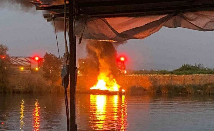 Manavgat Irmağı’nda fiber balıkçı teknesi alev alev yandı