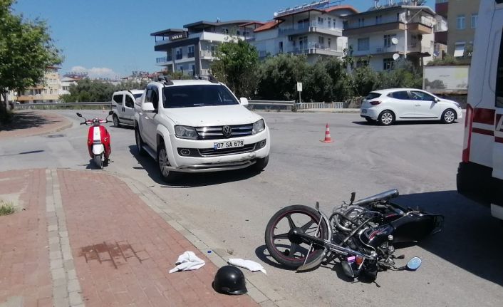 Antalya’nın Manavgat ilçesinde kamyonetin çarptığı motosikletteki baba ve oğlu yaralandı.