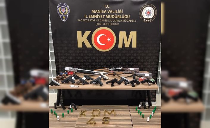 Manisa merkezli iki ilde silah ve mühimmat kaçakçılığıyla mücadele kapsamında gerçekleştirilen eş zamanlı operasyonla 22 kişi gözaltına alındı. Gözaltına alınan şahıslarla birlikte çok sayıda ruhsatsız tabanca, tüfek ve uyuşturucu madde ele geçirildi.