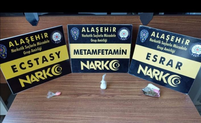 Manisa İl Emniyet Müdürlüğü Alaşehir Narkotik Suçlarla Mücadele Büro Amirliği görevlilerince uyuşturucu veya uyarıcı madde ticareti yapan, nakleden ve kullanan şahıslara yönelik yapılan çalışmalarda 1 şahsın üzerinden; 7,67 gram metamfetamin maddesi, 0,96 gram esrar maddesi, 2 adet extacy hap ele geçirildi. Konuyla ilgili H.B. (25) isimli şahıs hakkında uyuşturucu veya uyarıcı madde imal ve ticareti yapmak suçundan işlem yapılarak gözaltına alındı. Şahsın sorgusunun devam ettiği öğrenildi.