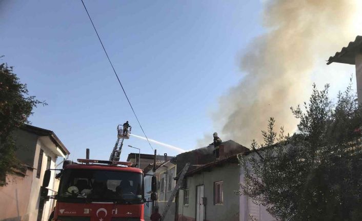 Manisa’nın Alaşehir ilçesinde çıkan yangında ahşap ev tamamen yanarak kullanılamaz hale geldi.