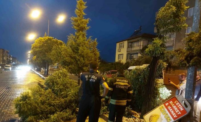 Manisa’nın Akhisar ilçesinde etkili olan fırtınada bazı ağaçlar devrildi.
