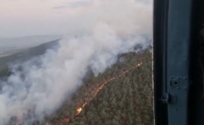 Manisa’nın Soma ilçesinde akşam saatlerinde başlayan yangına Orman İşletme Müdürlüğüne bağlı ekipler tarafından hem havadan hem de karadan müdahale ediliyor.