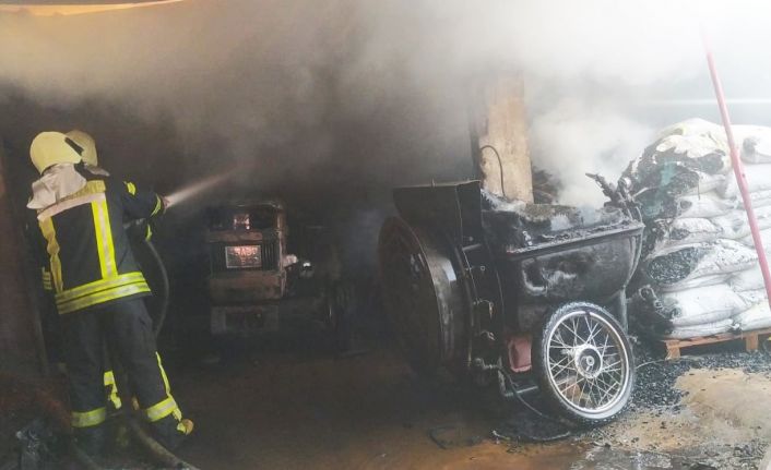 Yangında İsmail S.’ye ait ev ve avlu kullanılmaz hale gelirken, avluda bulunan iki adet traktör, bir motosiklet, ilaçlama makinaesi, ağaç motoru ve avluda bulunan birçok malzeme küle döndü.