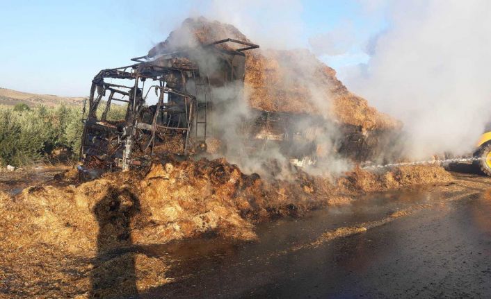 Manisa’nın Gölmarmara ilçesinde bir kamyonet saman yüklü kamyona arkadan çarptı. Kamyondan, kamyonetin üzerine devrilen samanların alev alması sonucu kamyonette yolcu olarak bulunan bir kişi yanarak hayatını kaybetti.