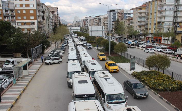 Manisa’da pandemiden dolayı zor günler geçiren servis araçları Manisa Şoförler ve Otomobilciler Odasının ‘J’ plaka dışındaki araçların da servis yapmalarını sağlayan kararının ardından daha fazla mağduriyet yaşamaya başladıklarını belirterek konvoylu eylem yaptı. İzmir girişinde toplanan servis araçları konvoy eşliğinde İzmir-Bursa Sürat yolunda bulunan oda önüne kadar giderek ‘Manisa Şoförler ve Otomobilciler Odası Başkanı Salih Karaağaç’ı istifaya davet etti.