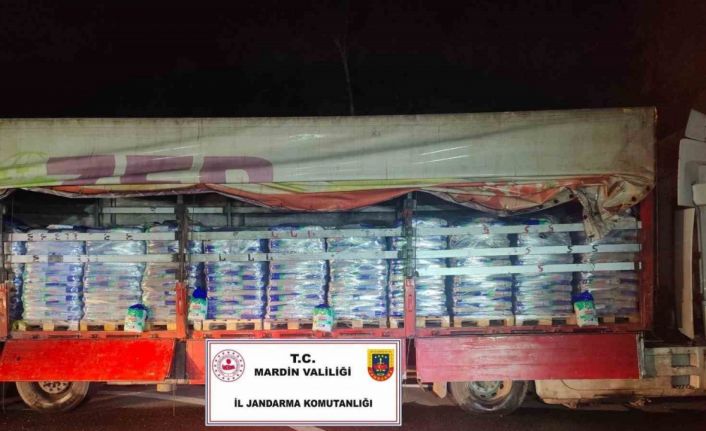 Mardin’in Artuklu ilçesinde jandarma ekiplerince bir tırda yapılan aramada 25 ton 500 gram sahte toz deterjan ele geçirildi.