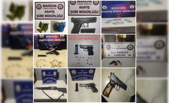 Mardin’de çeşitli suçlardan aranması bulunan 171 şahıs, Mardin İl Emniyet Müdürlüğünün yaptığı çalışmalar sonucunda yakalandığı bildirildi. Adli süreçlerinin akabinde toplam 45 suçlu cezaevlerine teslim edildi. İl genelinde yürütülen çalışmalar kapsamında; 23 adet tabanca, 208 adet fişek, 3 adet av tüfeği, 25 adet kartuş, 5 adet kesici delici alet, 575 gram narkotik madde, 236 adet narkotik hap, 49 bin 236 paket gümrük kaçağı sigara, 1200 kilogram gümrük kaçağı tütün, 1090 adet gümrük kaçağı puro, 457 şişe gümrük kaçağı içki, 144 adet gümrük kaçağı cep telefonu, 325 adet muhtelif gümrük kaçağı emtia, 1360 kilogram gümrük kaçağı emtia, 6 adet tarihi eser, 27 adet sikke, 1 adet kazı materyali ele geçirildi.